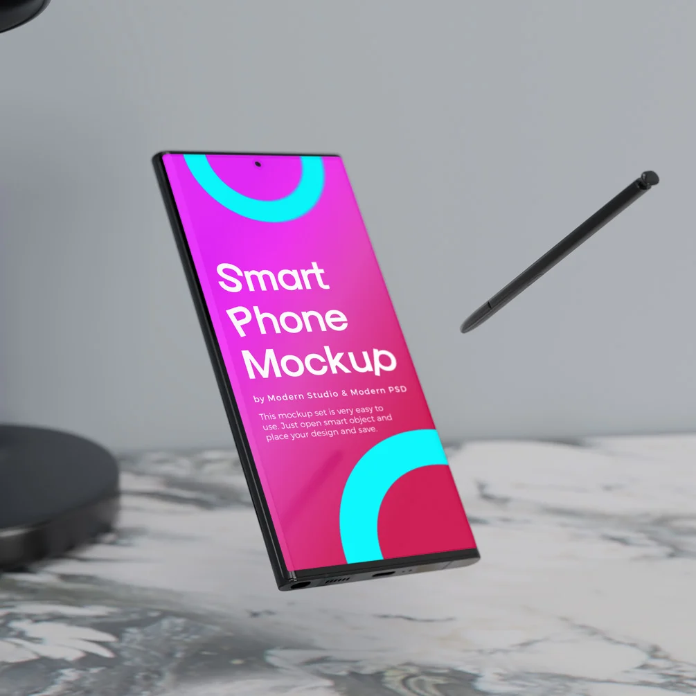 Introducing our FREE Samsung Galaxy S23 Ultra Mockup! Showcase your app designs, mobile UI, or website layouts with this high-quality and realistic mockup. The Samsung Galaxy S23 Ultra Mockup is easy to use, fully customizable, and perfect for presenting your designs in a professional and captivating way. Additionally, we offer 5 different high-resolution premium versions, starting from $9. Download now and take your presentations to the next level! Presented By Modern Studio & ModernPSD